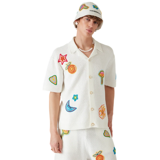 CASABLANCA Motif Short Sleeve Crochet Shirt