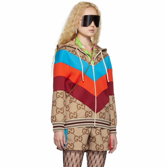 GUCCI Beige Jumbo GG Chevron Web Jacket
