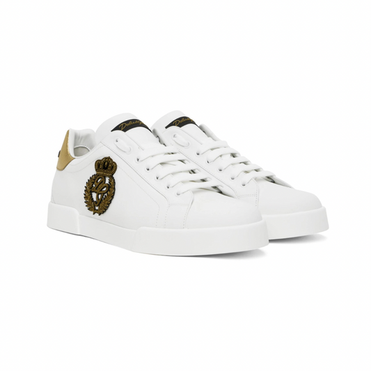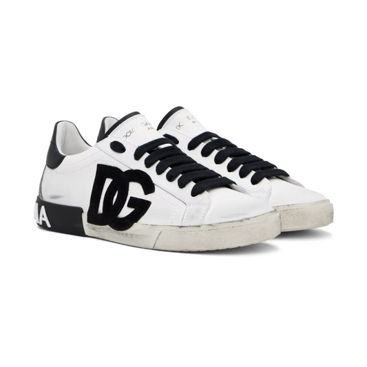 DOLCE & GABBANA White Calfskin Portofino Vintage Sneakers